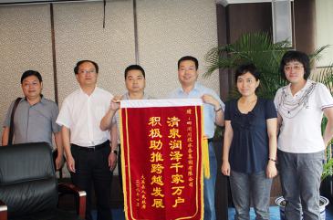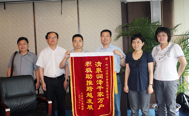 大英縣人民政府原縣長(zhǎng)雷云向川投水務(wù)贈(zèng)送錦旗