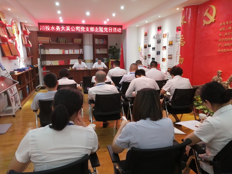 6月25日下午,川投水務大英水司開展主題黨日活動暨黨員大會。黨支部組織委員、副總經(jīng)理、工會主席王洪先,全體正式黨員參加會議,會議由黨支部副書記周義雙主持。