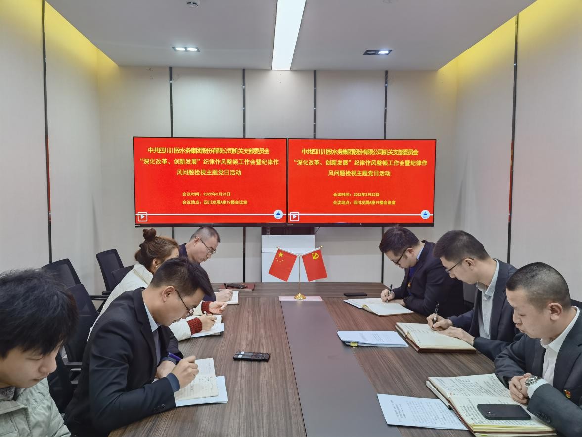 2022年2月23日,川投水務(wù)集團(tuán)機(jī)關(guān)黨支部為全面貫徹落實(shí)四川發(fā)展黨委《關(guān)于開(kāi)展“深化改革、創(chuàng)新發(fā)展”紀(jì)律作風(fēng)整頓工作的通知》要求,進(jìn)一步增強(qiáng)隊(duì)伍凝聚力和戰(zhàn)斗力,優(yōu)化發(fā)展環(huán)境,切實(shí)助推企業(yè)實(shí)現(xiàn)高質(zhì)量發(fā)展,機(jī)關(guān)黨支部通過(guò)主題黨日活動(dòng)的形式,組織召開(kāi)“深化改革、創(chuàng)新發(fā)展”紀(jì)律作風(fēng)整頓工作會(huì)暨紀(jì)律作風(fēng)問(wèn)題檢視會(huì)。