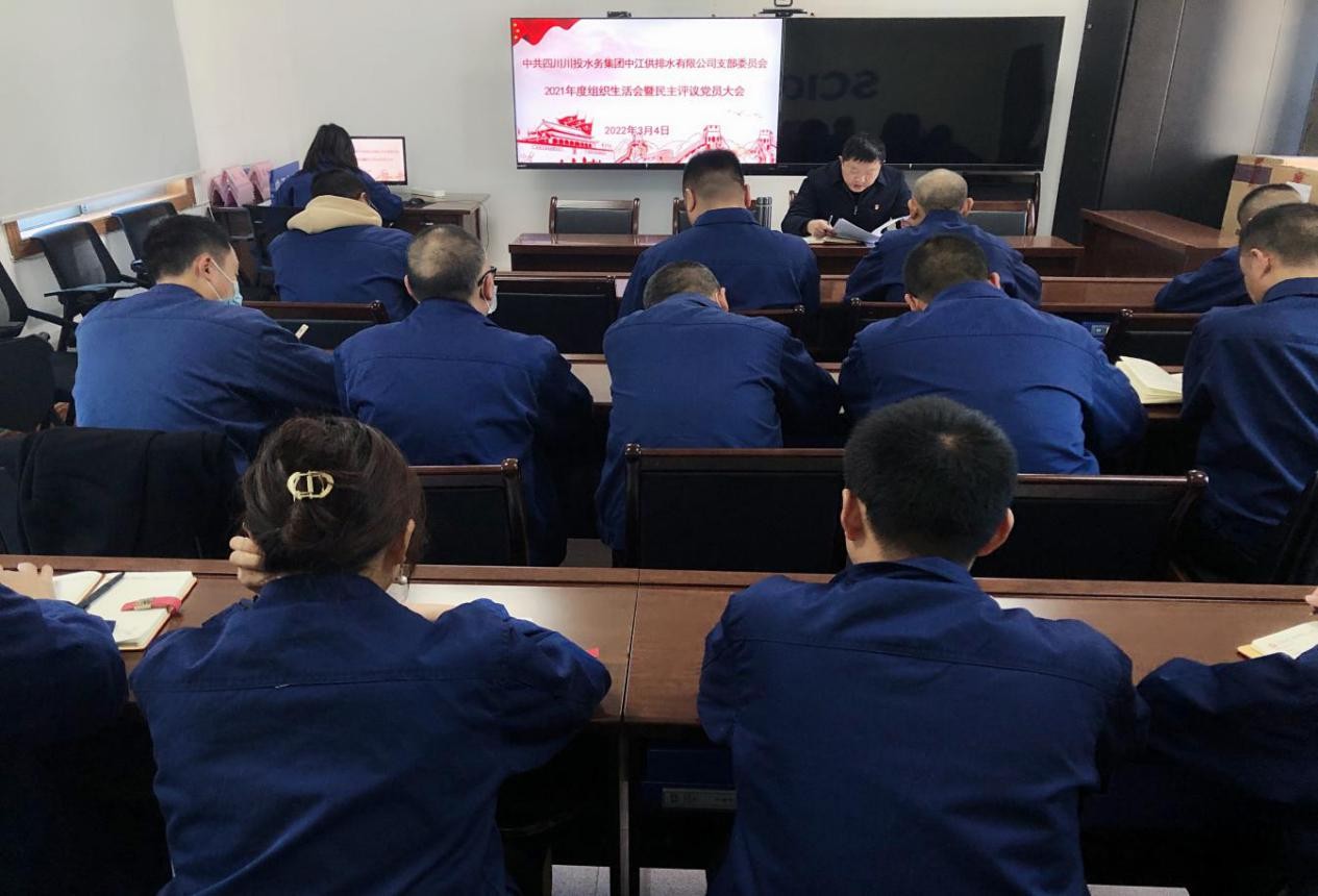2022年3月4日,中江水司黨支部組織召開2021年度組織生活會(huì)暨民主評(píng)議黨員大會(huì)。會(huì)議由黨支部書記、董事長(zhǎng)、總經(jīng)理朱禹主持,支部20名黨員同志參加會(huì)議。