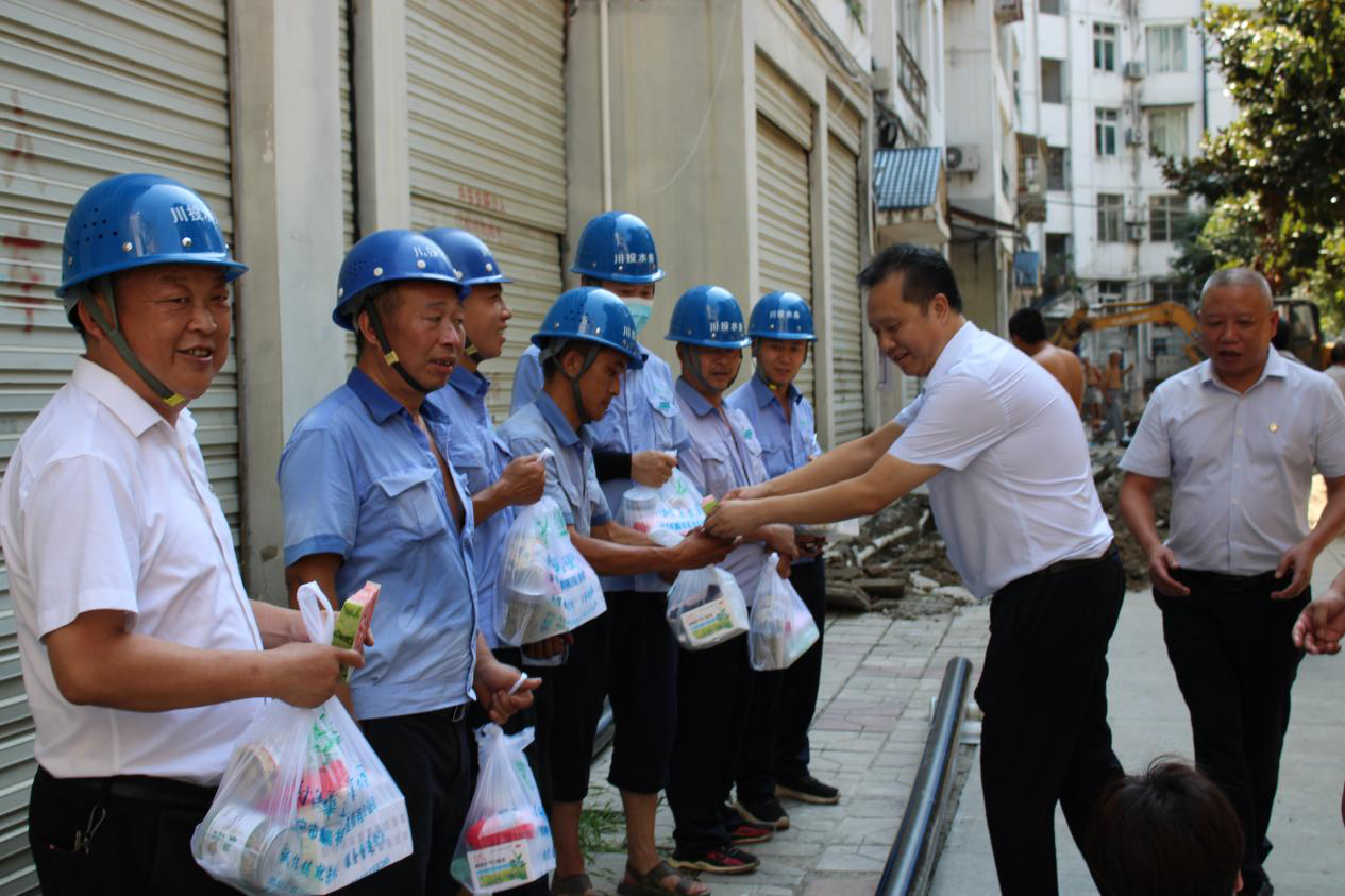 為切實(shí)做好職工夏季戶外防暑降溫工作,關(guān)愛一線職工的健康安全,8月11日,川投水務(wù)集團(tuán)黨委委員、副總經(jīng)理劉松果帶隊(duì)到濱江小區(qū)施工現(xiàn)場,開展2022年“夏送清涼”慰問活動(dòng),為高溫下在戶外工作的一線員工送去清涼與關(guān)愛。