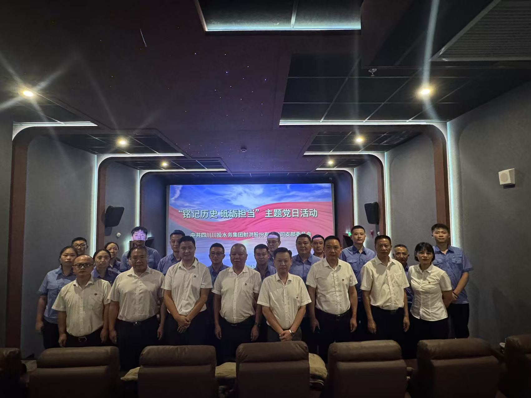 為慶祝中國人民解放軍建軍98周年,深切緬懷革命先烈,弘揚(yáng)偉大抗戰(zhàn)精神,激發(fā)全體黨員愛國情懷和干事創(chuàng)業(yè)的使命擔(dān)當(dāng),8月1日下午,川投水務(wù)射洪公司黨支部組織開展了“銘記歷史 砥礪擔(dān)當(dāng)”主題黨日活動(dòng)。活動(dòng)特別邀請公司退伍軍人及現(xiàn)役軍屬共同參與,通過集中觀看愛國主義題材影片《南京照相館》,重溫崢嶸歲月,汲取奮進(jìn)力量。