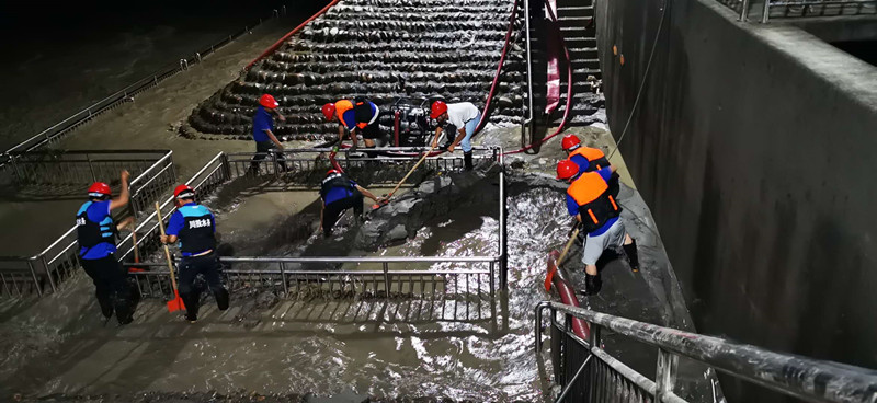 會上,黃董事長通報了所屬中江水司、射洪水司及榮縣氣司等公司受災(zāi)情況及抗洪搶險工作組織開展情況,著重對受災(zāi)較為嚴重的射洪水司龍灘村取水口搶險工作進行了通報。受“8.16”百年一遇的涪江洪峰過境影響(此次洪峰流量最高達22600立方米/秒,比2018年“7.11”洪災(zāi)時最高流量高出1200立方米/秒),射洪水司龍灘村取水口廠區(qū)被過境洪峰及其攜帶的大量泥沙所淹沒,被迫停止取水。為盡快恢復正常供水,川投水務(wù)黨委書記、董事長黃勁,黨委副書記、總經(jīng)理鄧銳駐守射洪水司現(xiàn)場指揮,帶領(lǐng)由射洪水司精干力量組成的應(yīng)急搶險隊伍歷經(jīng)22小時連續(xù)不間斷奮戰(zhàn),成功恢復供水,取得抗洪搶險的階段性勝利。