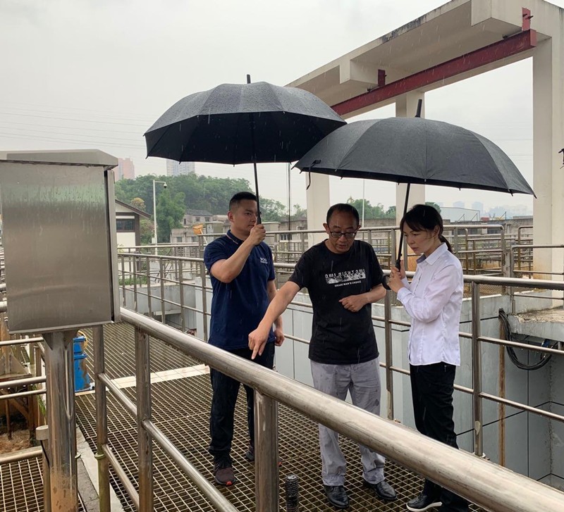 6月24日上午,川投水務(wù)集團(tuán)財(cái)務(wù)總監(jiān)祝瑗、安全環(huán)保部李駿一行赴南充環(huán)保開展慶祝建黨100周年安全環(huán)保大檢查工作,南充環(huán)??偨?jīng)理?xiàng)钚駯|和安全員田田陪同檢查。