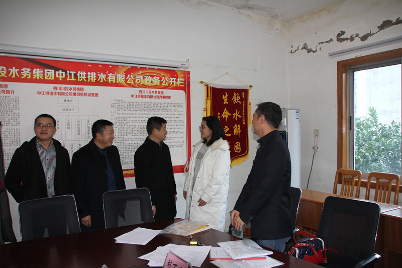 在公司會議室,陳勇副縣長與川投水務集團黨委副書記、工會主席、中江水司董事長王小元進行了親切交流,并感謝中江水司在過去一年里為中江經濟社會發(fā)展,尤其是環(huán)保督察、污水項目建設以及脫貧攻堅工作所作出的努力!同時,陳勇副縣長查看了管網水質、水壓在線監(jiān)測系統(tǒng),并希望切實做好春節(jié)期間安全生產和供水應急保障預案,履職盡責,確保節(jié)日期間安全供水,并借此機會恭祝大家新年快樂!