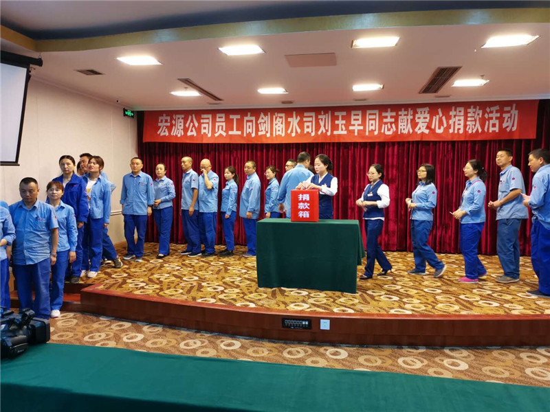 疾病無情,宏源有愛。2019年5月18日上午11:00,公司在11樓大會議室舉行了“向川投水務劍閣公司劉玉早同志捐款”活動,公司領(lǐng)導帶頭捐款,不當班的員工也早早到場,紛紛伸出援助之手,慷慨解囊。而當天因在值班生產(chǎn)不能到現(xiàn)場捐款的員工已經(jīng)于17日晚上通過微信進行捐款,公司204名員工共籌集善款53161.00元。按照公司黨委書記、總經(jīng)理李旭東的要求,當天下午14:00,公司工會主席倪沛林、綜合部經(jīng)理劉平等一行驅(qū)車300多公里將所捐善款親手送到川投水務劍閣公司黨支部書記、總經(jīng)理何天政的手中,轉(zhuǎn)達了宏源公司全體員工對劉玉早同志的關(guān)心和祝福。
