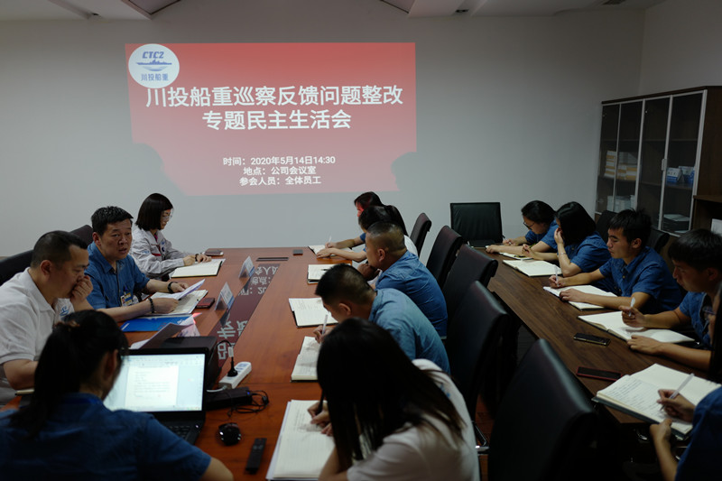根據(jù)省國資委第二巡察組要求,按照川投水務(wù)集團(tuán)黨委《關(guān)于落實省國資委第二巡察組巡察反饋意見的整改方案》,四川川投船重環(huán)境科技有限公司于2020年5月14日召開巡察反饋問題整改專題民主生活會,會議由總經(jīng)理馬銘偉主持,全體員工參加會議。