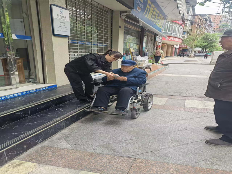 2024年4月22日上午,萬(wàn)源水司的收費(fèi)大廳迎來(lái)了一位特殊的客戶(hù)。這位市民因身體原因行動(dòng)不便,卻依然堅(jiān)持親自前來(lái)辦理繳費(fèi)業(yè)務(wù)。面對(duì)這位特殊的客戶(hù),收費(fèi)大廳的工作人員沒(méi)有猶豫,立即伸出了援手,主動(dòng)為這位市民提供了全程陪伴的貼心服務(wù)。