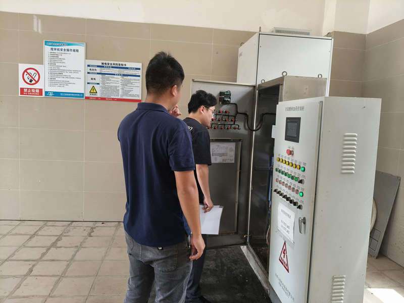 馬總一行在深入生產(chǎn)區(qū)詳細了解了船重污水廠的生產(chǎn)運營、防汛減災以及安全環(huán)保等工作情況,對污水廠的危廢臺賬、應急物資以及現(xiàn)場設施設備運行情況進行了檢查。